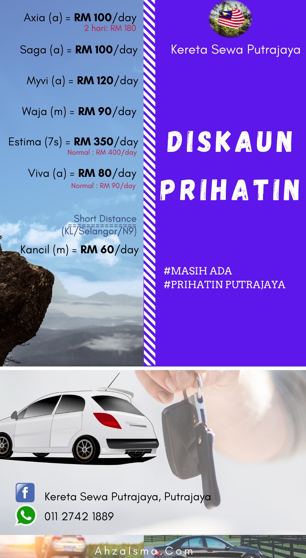 Anda sekeluarga ingin terbang bercuti ke Putrajaya?. Kuala Lumpur?. Bimbang tiada kenderaan untuk bergerak bebas?. Perjalanan dari KLIA ke Hotel Penginapan jauh?. Jangan bimbang, KERETA SEWA PUTRAJAYA SEDIA MEMBANTU.